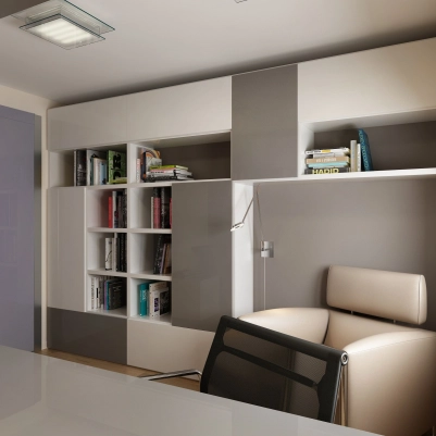 Даже текстиль на окнах в интерьере кабинета как бы подыгрывает общему настроению. От этого пространства невозможно оторвать глаз, пока детально не рассмотришь все детали обстановки, тем более тут их великое множество. Чего стоят только мягкие бескаркасные кресла темно- серого практичного оттенка, на которых возле окна так удобно просто расположиться и почитать любимую книгу.