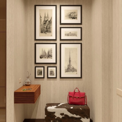 Заметьте, что интерьер прихожей имеет не только настенную видимую подсветку. Есть в наличии здесь и скрытое закарнизное освещение и точечные светильники, которые включаются отдельно. Туалетный столик очень вместительный, потому что используется полная ширина эксплуатируемого помещения.