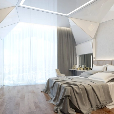 Тяжелые шторы бордового цвета напоминают театральный занавес. А большое французское окно за ними – выход на большую сцену. Прекрасно дополняют роскошный яркий интерьер интересные картины в простых рамах на одной из стен.
