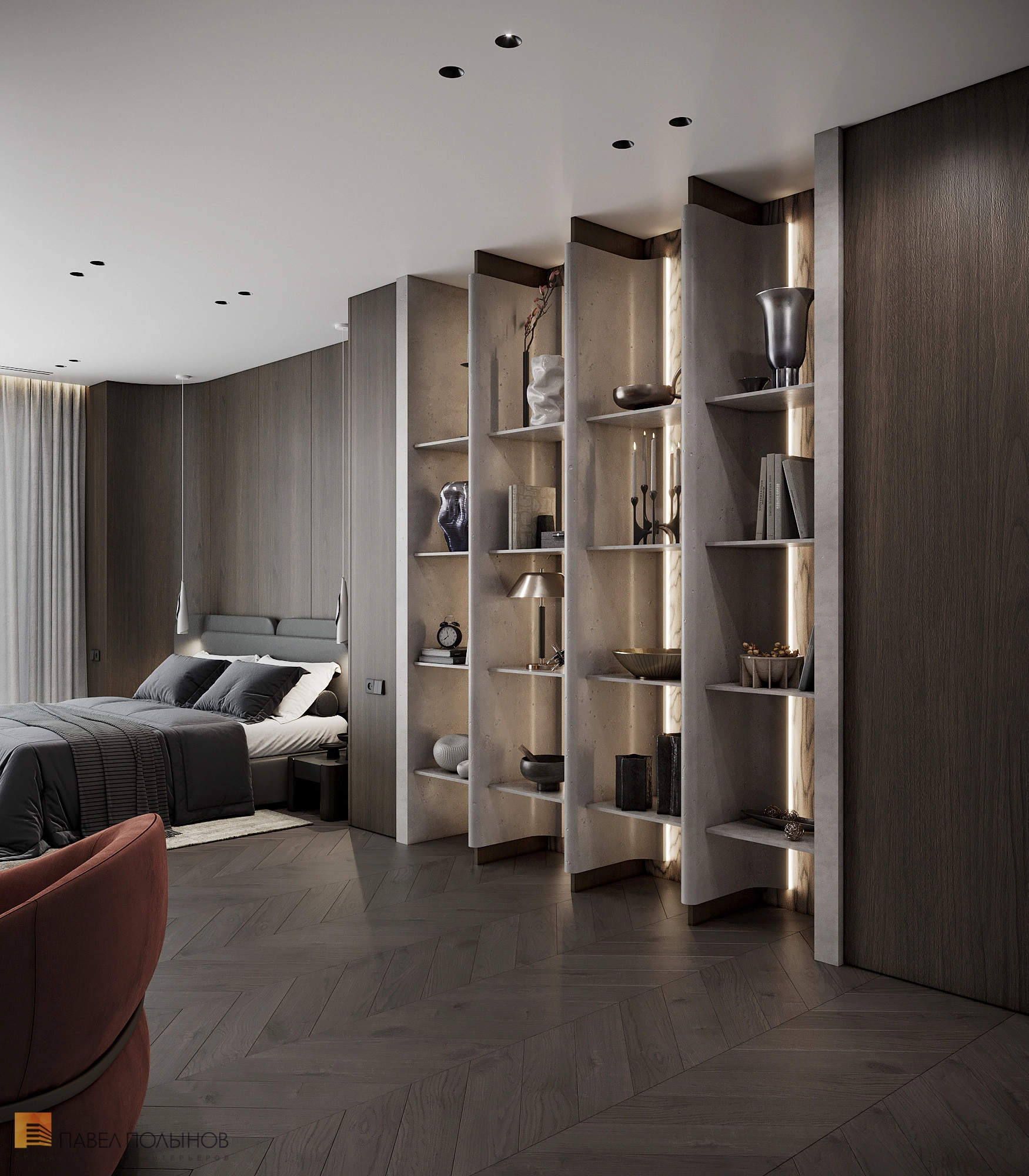 Дизайн интерьера спальни Фото дизайн интерьера спальни из проекта «Дом в Рощино, 526» Проект: Дом в Рощино Другие фотографии из этого проекта: Смотреть все фотографии на странице проекта