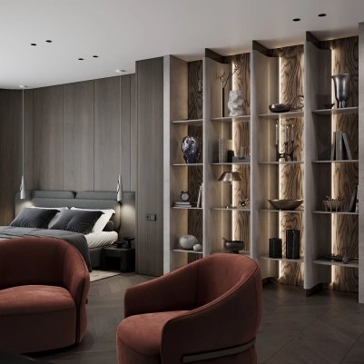 Дизайн интерьера спальни Фото дизайн интерьера спальни из проекта «Дом в Рощино, 526» Проект: Дом в Рощино Другие фотографии из этого проекта: Смотреть все фотографии на странице проекта